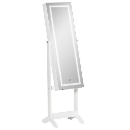 Armoire à bijoux sur pied multi-rangement avec miroir LED MDF blanc