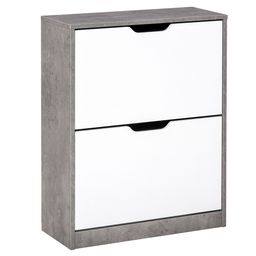 Armoire à chaussures meuble à chaussures dim. 62L x 26l x 81H cm 2 portes abattantes blanc effet béton ciré