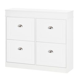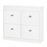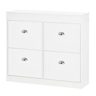 Ce joli meuble à chaussures trouvera facilement sa place dans votre entrée. Equipé de nombreux rangements, il vous permettra de ranger jusqu'à 32 paires environ suivant votre pointure. Ce meuble à chaussures à 4 abattants apportera beaucoup de charme à votre pièce avec ses poignées vintage en forme