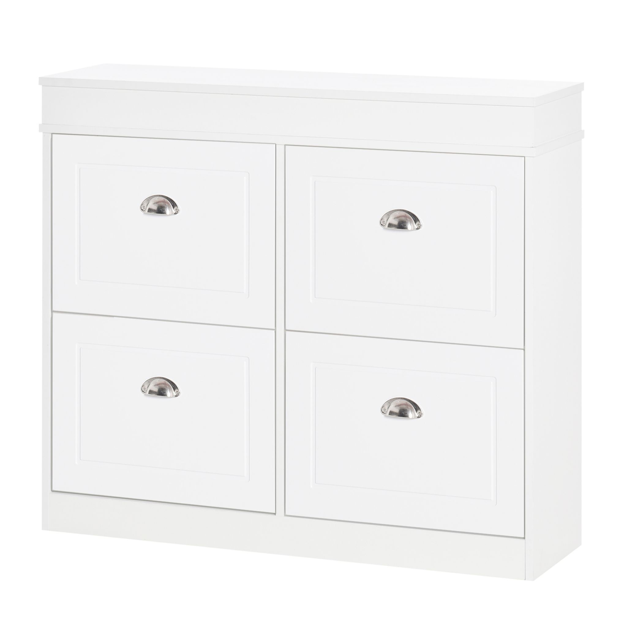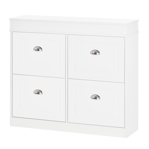 En savoir +Ce joli meuble à chaussures trouvera facilement sa place dans votre entrée. Equipé de nombreux rangements, il vous permettra de ranger jusqu'à 32 paires environ suivant votre pointure. Ce meuble à chaussures à 4 abattants apportera beaucoup de charme à votre pièce avec ses poignées vintage en forme de coquilles pour une ambiance campagne. On aime son look épuré et moderne, facile à marier avec tous les styles de déco.