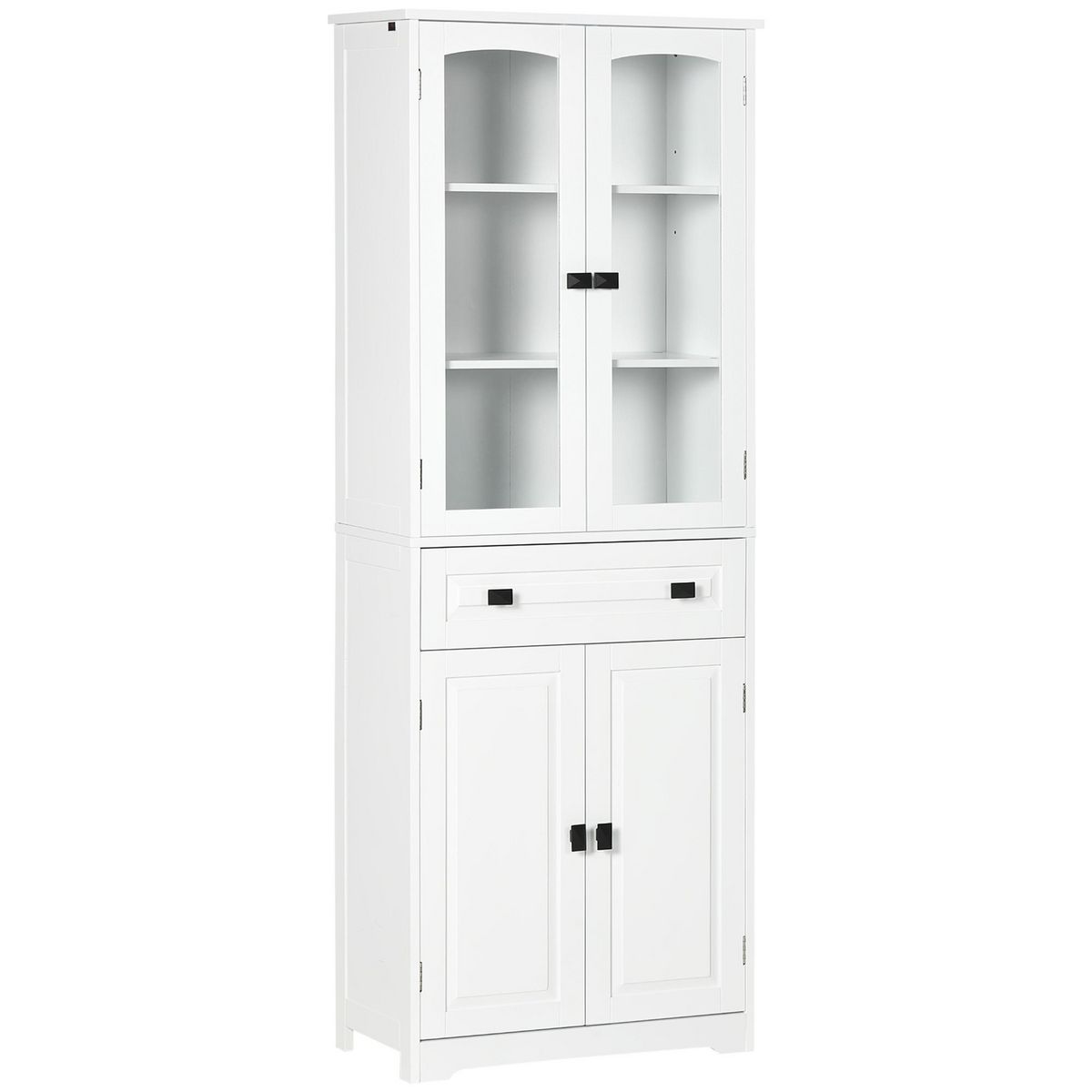Armoire de cuisine buffet haut 4 portes 3 étagères tiroir verre trempé panneaux MDF blanc