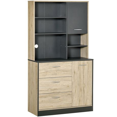 Armoire de cuisine multi-rangements 2 portes 3 tiroirs 3 étagères + grand plateau 90L x 39l x 169H cm bicolore chêne clair gris
