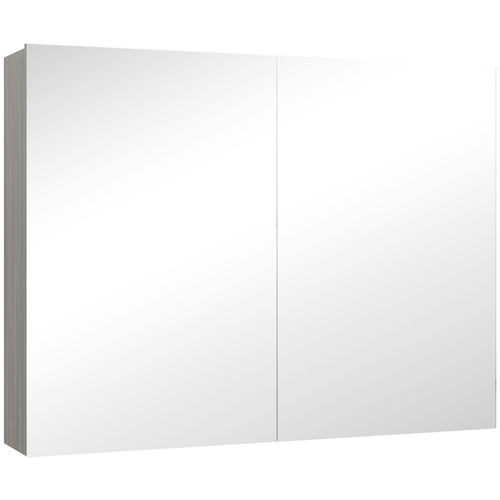 Armoire miroir de salle de bain 2 portes étagères dim. 80 x 15 x 60 cm gris