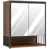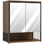 Armoire miroir murale salle de bain 2 portes design - étagère, niche - métal noir effet bois noyer