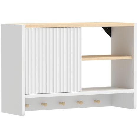 Armoire murale salle de bain rangement porte crochets bois blanc chêne