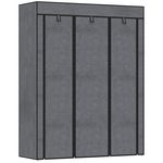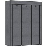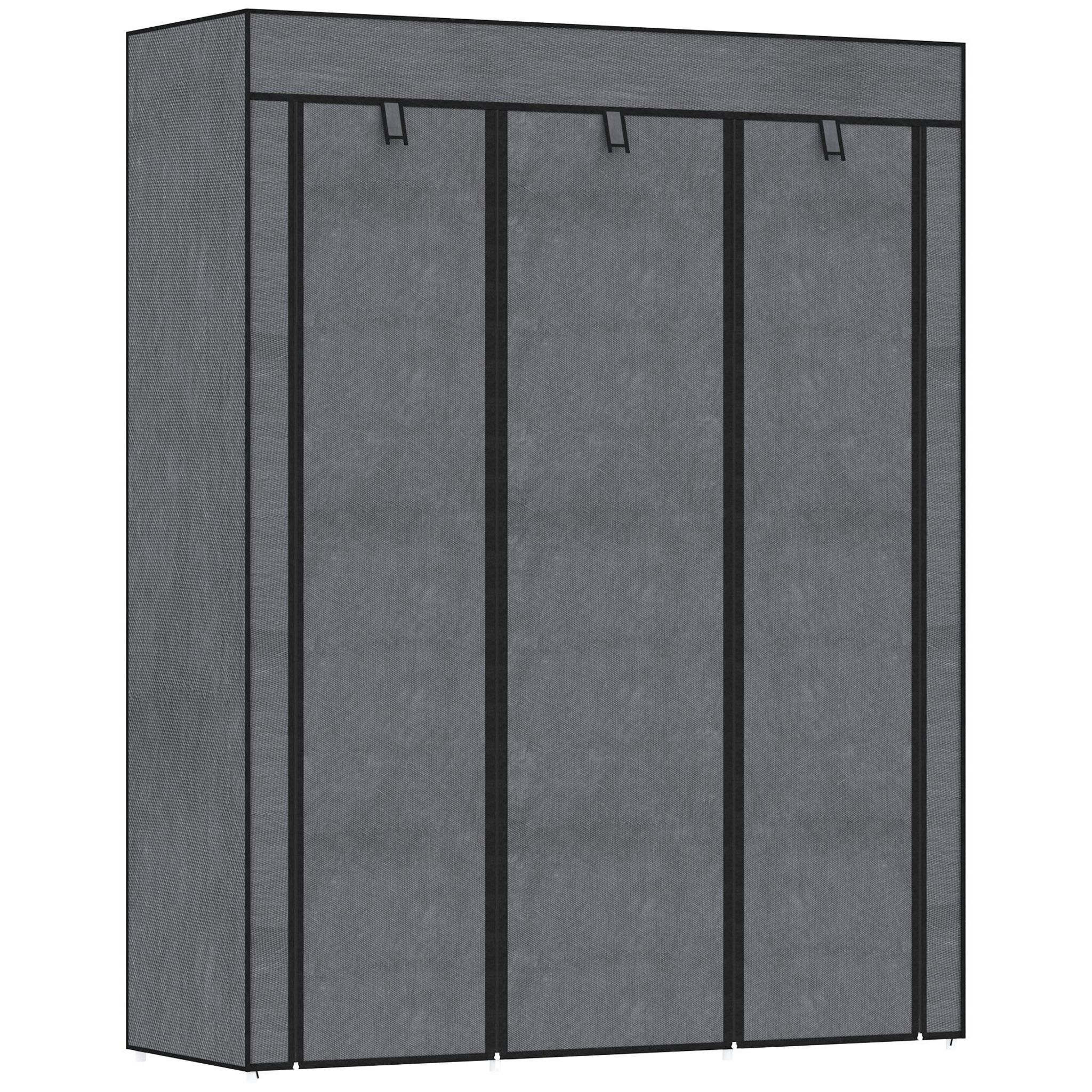 Armoire penderie multi-rangement - 8 étagères, 2 barres - dim. 125L x 43l x 162,5H cm - acier noir non tissé gris