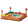 Bac à sable en bois design muraille - 4 drapeaux et sièges, doublure - dim. 90 x 90 x 17 cm - bois sapin pré-huilé