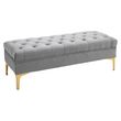 Banc banquette capitonnée style classique chic dim. 118L x 45l x 42H cm piètement métal doré velours gris clair