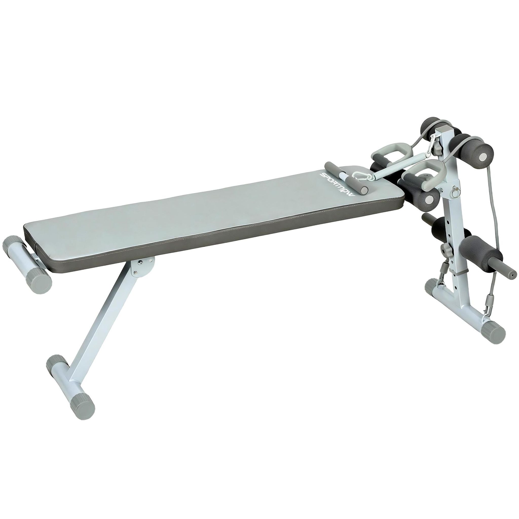 Optimisez vos entraînements avec le banc de musculation réglable SPORTNOW ! Idéal pour divers exercices, il inclut cordes de résistance et barre d'assistance. Siège ajustable sur 3 niveaux pour confort ergonomique. Rangez-le verticalement après usage pour économiser de l'espace. LA FORME SANS EFFORT !