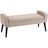 Banquette coffre de rangement 2 en 1 style contemporain pieds effilés bois d'hévéa noir aspect lin beige