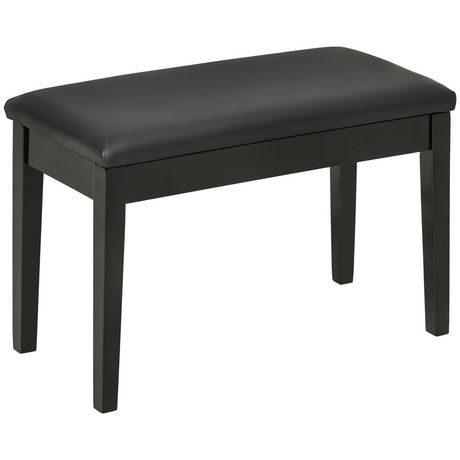 Banquette tabouret siège pour piano avec coffre de rangement pied bois hévéa revêtement synthétique noir