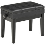 Banquette tabouret siège pour piano coffre intégré hauteur réglable bois hévéa assise revêtement synthétique noir