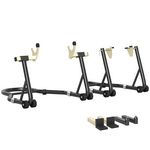 Sécurisez votre moto avec les béquilles d'atelier pour moto HOMCOM, dotées de pinces de serrage pour stabiliser. Adapté à diverses tailles de motos, cet ensemble de béquille d'atelier permet de soulever l'avant ou l'arrière avec une base quadri-roues rembourrée. Idéal pour les réparations sans risqu