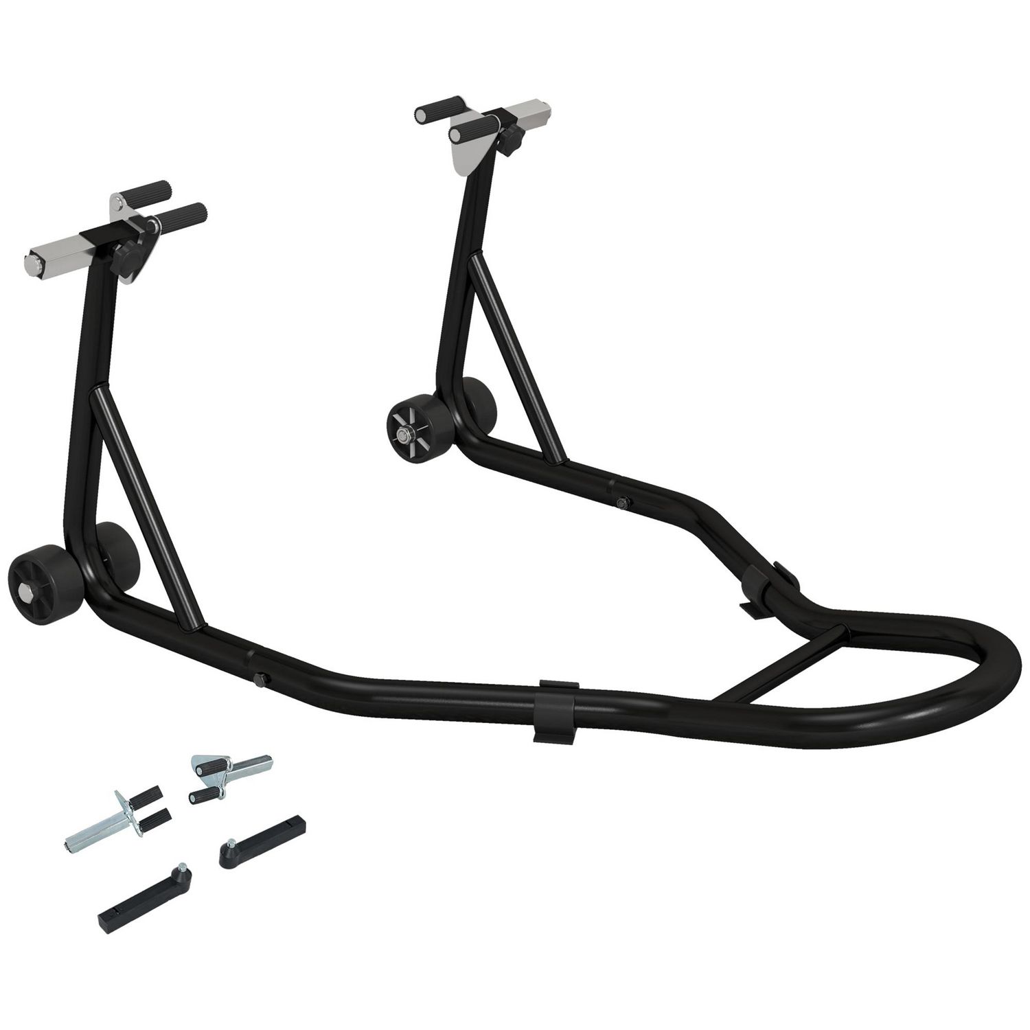 Optimisez l'entretien de votre moto avec le support HOMCOM, parfait pour divers types de pneus. Il assure un ajustement optimal avec ses adaptateurs et revêtements antidérapants, et un cadre en acier robuste pour un soutien résistant. Un outil indispensable pour lever facilement votre moto.