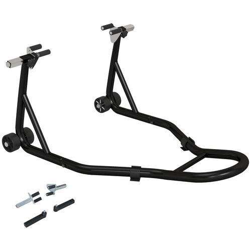 Description : Optimisez l'entretien de votre moto avec le support HOMCOM, parfait pour divers types de pneus. Il assure un ajustement optimal avec ses adaptateurs et revêtements antidérapants, et un cadre en acier robuste pour un soutien résistant. Un outil indispensable pour lever facilement votr