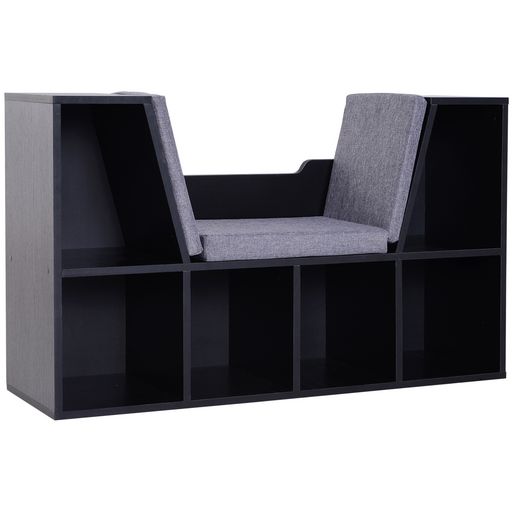 Bibliothèque banc 2 en 1 design contemporain 6 casiers 3 coussins fournis 102L x 30l x 61H cm noir gris