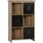 Bibliothèque design industriel - meuble de rangement 3 niches 3 casiers - panneaux particules aspect bois veinage portes métal noir