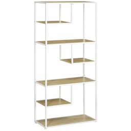Bibliothèque étagère de rangement à 7 niveaux style industriel acier bois clair