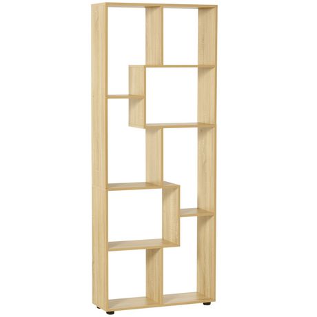 Bibliothèque étagère meuble de rangement dim. 70L x 24l x 178H cm en zigazag et 8 espaces en panneau de particules naturel