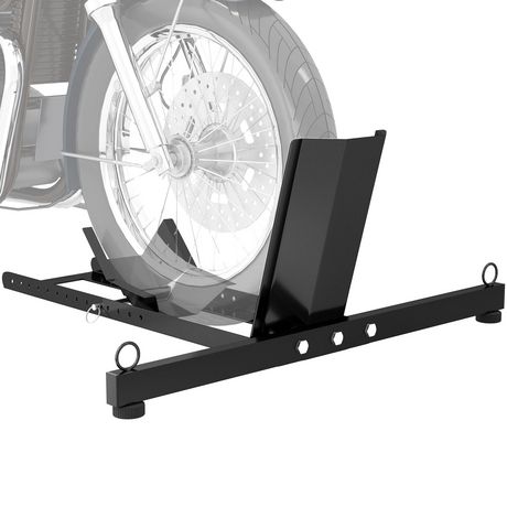 Optimisez la maintenance de votre moto avec le bloque de roue pour moto HOMCOM pour roues de 34 à 84 cm de diamètre et 6 à 16 cm de large. Supportant 816,5 kg avec un cadre en acier robuste, il est idéal pour l'entretien ou le transport, avec montage au sol ou fixe. Les boucles pour sangles garantissent une sécurité accrue, stabilisant votre moto.