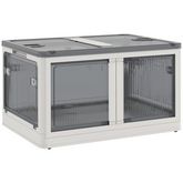 Boîte de rangement plastique 99L pliable empilable couvercle 4 roulettes accès 5 côtés blanc gris