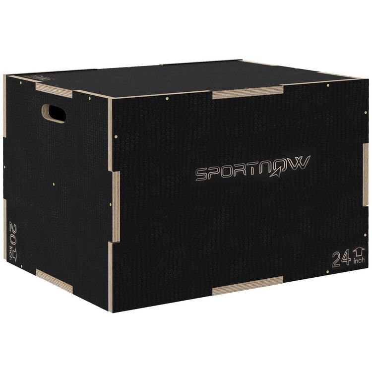 Box jump - box de pliométrie - boite de saut - 3 hauteurs 51/61/76H cm - charge max. 120 Kg - bois surface antidérapante noir