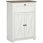 Buffet 2 portes étagère tiroir coulissant style rural chic façades portes à croisillons poignées métal noir blanc aspect bois