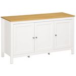 Buffet bas style classique chic - 3 portes, 2 étagères réglables - MDF panneaux blanc aspect bois clair