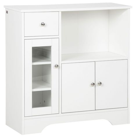 Buffet de cuisine meuble de rangement moderne avec porte en verre, tiroir, grande niche et étagères réglables, 80 x 30 x 82 cm, blanc