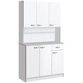 Ce joli buffet haut de cuisine blanc gris avec poignées métal alu. ajoutera une touche de modernité et d'élégance supplémentaire à votre intérieur. Disposant de nombreux rangements haut et bas (6 portes, 1 tiroir, grand plateau), cette armoire vous sera très pratique d'utilisation pour devenir rapidement indispensable au quotidien.