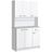Buffet haut multi-rangement - 6 portes, tiroir, grand plateau - dim. 101L x 39l x 180H cm - panneaux particules blanc gris