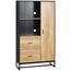 Buffet haut multi-rangement une porte 3 étagères 2 tiroirs 2 niches piètement acier noir aspect chêne clair