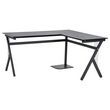 Bureau d'angle informatique design contemporain 155L x 130l x 76H cm MDF acier noir