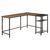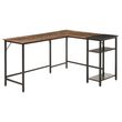 Bureau informatique design industriel bureau d'angle 2 tablettes support CPU imprimante aspect vieux bois métal noir