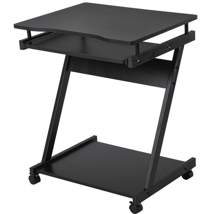 Bureau informatique roulant - bureau mobile - table d'ordinateur - tablette coulissante clavier + étagère - noir