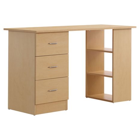 Bureau informatique table multi-fonctions 3 tiroirs 2 étagères dim. 120L x 49l x 72H cm MDF aspect bois clair
