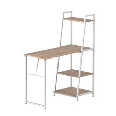 Bureau pliable rabattable - bureau bibliothèque 2 en 1 - 4 étagères - imitation bois chêne clair métal blanc