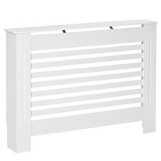 Ce superbe cache-radiateur dim. 112L x 19l x 81H cm en MDF à lattes horizontales blanc sublimera votre intérieur. Conçu pour ajouter une touche décorative et vous offrant une étagère supplémentaire, vous ne serez pas déçu ! Caractéristiques : - Cache-radiateur design contemporain à lattes horizont