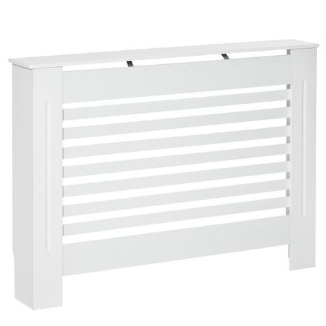 Ce superbe cache-radiateur dim. 112L x 19l x 81H cm en MDF à lattes horizontales blanc sublimera votre intérieur. Conçu pour ajouter une touche décorative et vous offrant une étagère supplémentaire, vous ne serez pas déçu !