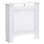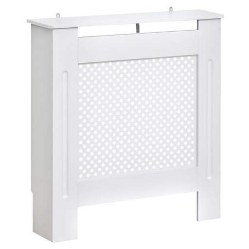 Cache-radiateur HOMCOM en MDF, avec grille ronde et finition blanche, conçu pour harmoniser tout décor. Cabinet élégant permettant une distribution efficace de la chaleur et un accès facile aux commandes. Facile à monter, il ajoute une touche d'élégance à l'espace.