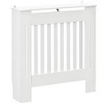 Couvre-radiateur HOMCOM moderne, en MDF blanc, prêt à monter. Design à lattes avec ventilations pour une chaleur diffuse tout en sécurisant contre les brûlures. Ajoute un espace de rangement pour décorations. Idéal pour dissimuler les radiateurs vieux ou inesthétiques, pratique et élégant pour la ma