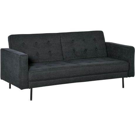 Laissez-vous séduire par le charme cosy et moderne de ce superbe canapé convertible 2 places style Chesterfield coloris gris foncé. Sa structure en contreplaqué, ses pieds en métal noir, son épais garnissage mousse haute densité et son revêtement en tissu (55% coton, 45% polyester) vous offriront le