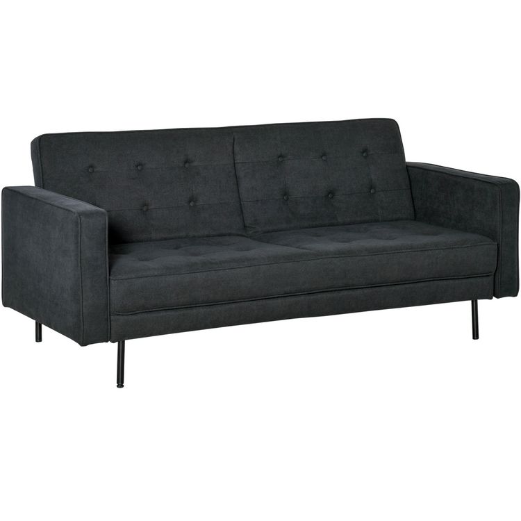 Canapé convertible 2 places style Chesterfield capitonné dossier inclinable 3 positions tissu gris foncé