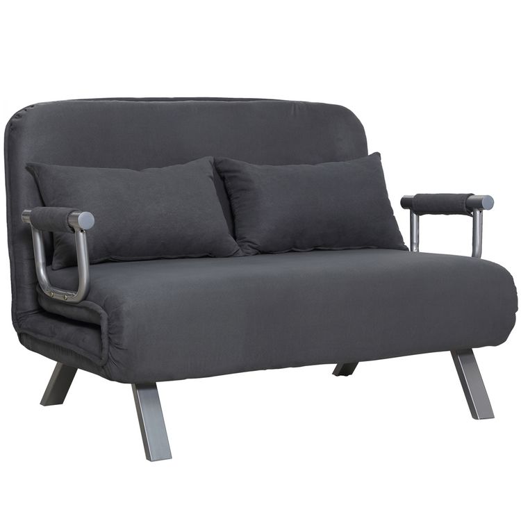 Canapé-lit canapé convertible 2 places déhoussable grand confort 2 coussins fournis pieds accoudoirs métal suède gris foncé