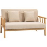 Canapé lounge 2 places - 2 coussins inclus - assise profonde - accoudoirs - structure bois hévéa - aspect lin beige
