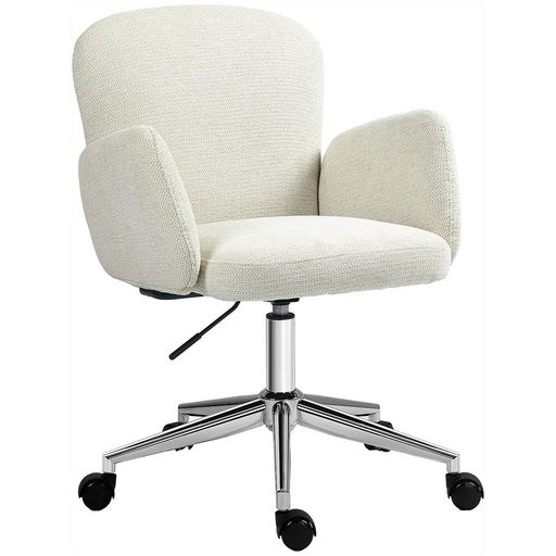 Chaise de bureau design ergonomique réglable pivotante piètement chromé aspect lin écru