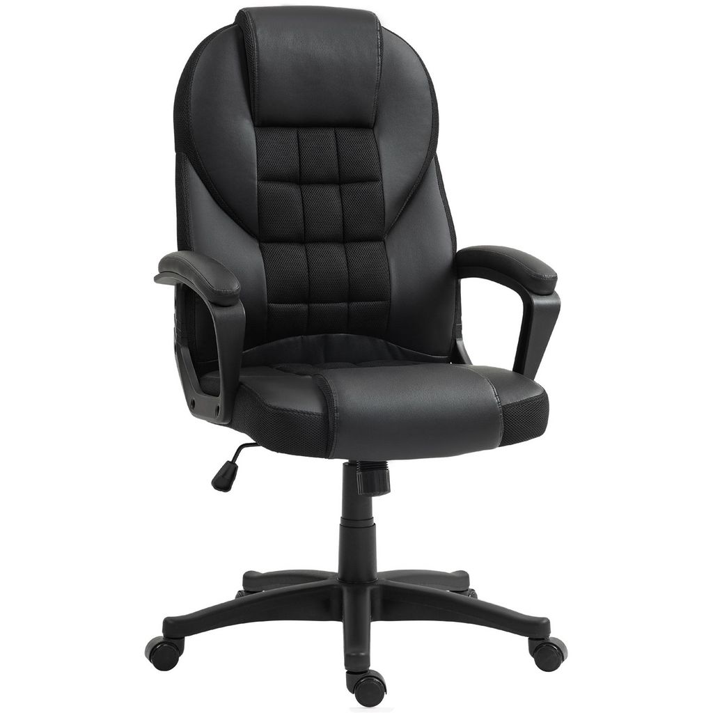 Optimisez votre bureau avec le fauteuil de bureau confortable HOMCOM à dossier haut, combinant revêtement synthétique élégant et maille respirante. Facile à nettoyer, ajustez l'assise de 48 à 58 cm. Avec fonction basculante et assise pivotante à 360° sur cinq roues en PU, notre fauteuil bureau est idéal pour tout bureau ou salle d'étude.