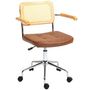 Chaise de bureau style vintage - réglable, pivotante - acier chromé bois aspect rotin assise effet capitonné