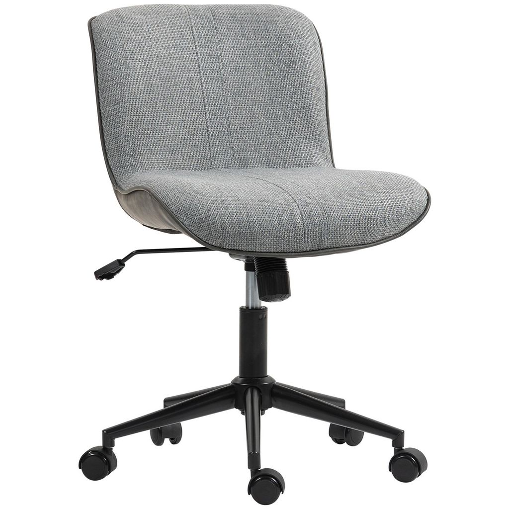 Profitez du fauteuil de bureau HOMCOM : tissu respirant effet lin, rembourrage mousse haute densité, assise pivotante 360°, design sans bras, hauteur ajustable de 45 à 55 cm, roues en revêtement de polyuréthane pour un déplacement fluide. Idéal pour les espaces de travail à domicile.