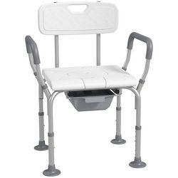 Chaise de douche chaise percée 2 en 1 - hauteur réglable, antidépante - seau de toilette, accoudoirs - alu HDPE blanc